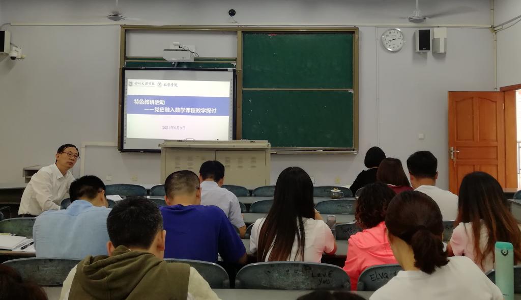 2021年6月9日,太阳成集团tyc122cc全体教师在博文楼414教室开展以党史融入数学课程教学探讨为主题的教研活动。