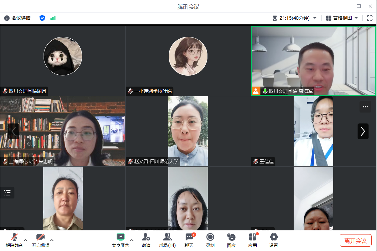 会议最后,各位老师就虚拟教研室未来的发展方向以及建设思路进行了热烈的讨论。未来教研室将与合作单位一起依托先进信息技术,建设一批高质量的数学教育类课程资源,最大程度地发挥校内与校外、高校与中小学衔接作用,释放丰富的实践教学资源效能,让虚拟教研室切实发挥育人实效。