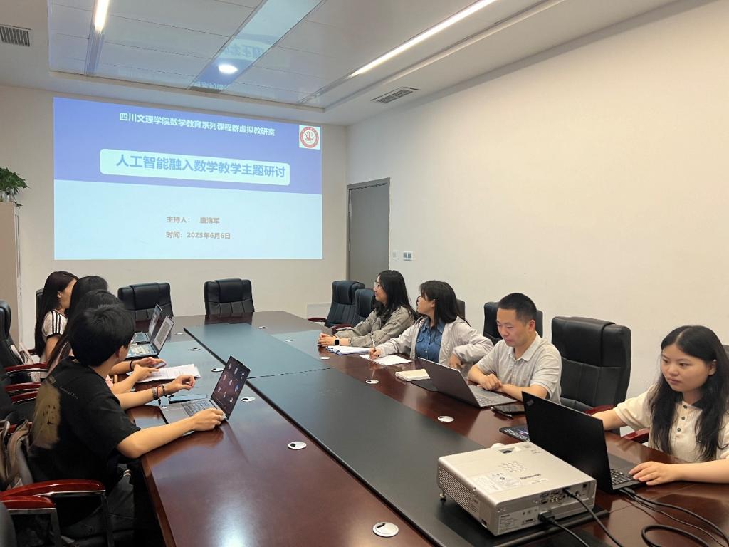 唐海军博士首先介绍了虚拟教研室和公司数学与应用数学专业基本情况,并展示了2023年申报虚拟教研室之后,获得的教学成果以及近期研究方向。其次,从团队建设、教研教改、建设成效和组织保障等四方面介绍了虚拟教研室建设质量检测指标体系。最后,组织与会的教师,围绕人工智能融入中小学数学教学、AI赋能职前数学教师的培养等内容进行了讨论。