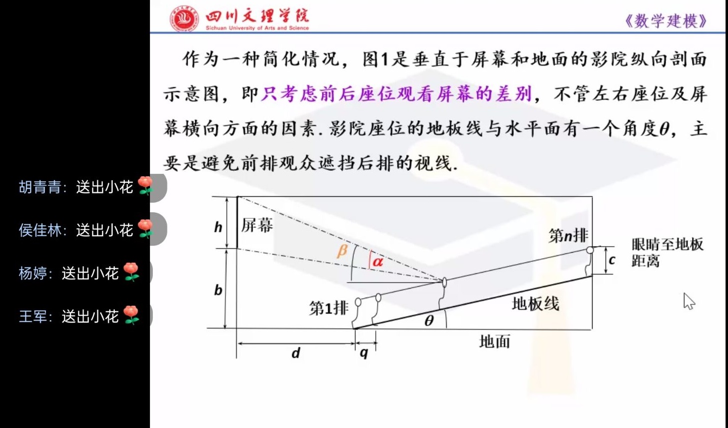 2022年太阳成集团tyc122cc数学建模校赛即将开赛,为比赛的顺利开展,数学建模协会负责人李骏老师于2022年4月9日19:00,作题为“基于电影院设计谈数学建模”的赛前线上讲座,全体参赛选手参加。