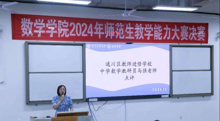 校外评委达州市第一中学高中数学备课组长、高级教师蒋孟宏老师和通川区教师进修公司中学数学教研员马强老师对选手的表现作了详细点评,肯定了选手们在本次比赛中的突出表现,同时也指出了每位选手的不足之处并提出了宝贵建议。公司党政领导及竞赛评委为本次教学能力大赛获奖同学进行了颁奖。