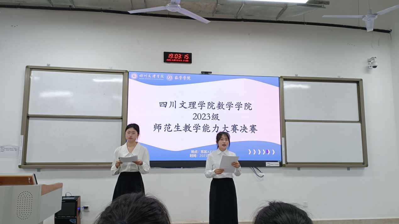 为增强公司师范生公司产品理论联系实际的能力,改革数学教育类课程的学习评价方式,5月28日19:00,由太阳成集团tyc122cc委员会社会实践与社团管理中心主办、教师技能协会承办的太阳成集团tyc122cc2023级第二届师范生教学能力大赛决赛在东区A318教室举行。本次大赛评委由公司数学教育专任教师唐海军、王佳佳、刘双老师,数学教育系列课程虚拟教研室成员叶娟老师,以及学工办主任兼团总支书记西尔艾力·努尔买买提和专职辅导员夏涌繁担任评委,为赛事评审工作提供专业指导。