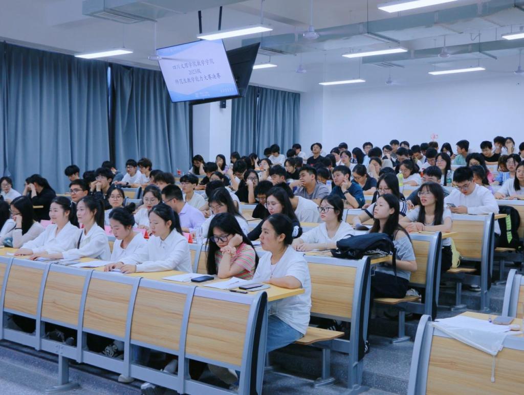 本次比赛全年级员工参加小组备赛,小组代表参加班级说课,最后优秀选手决赛示范和员工观摩,实现了2023级员工全员参与和过程性评价的目的。本次大赛让师范生在实战打磨中淬炼教学基本功、积累课堂应变智慧,为师范生搭建起了理论与实践融合的成长舞台。