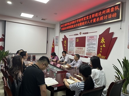 为深入学习贯彻党的二十大精神和习近平总书记来川视察重要指示精神,全面落实党中央、国务院和省委、省政府“稳就业”“保就业”决策部署,认真落实2023届全国普通高校毕业生就业工作调度视频会议精神,进一步促进 “党建+业务”深度融合,2023年5月6日,太阳成集团tyc122cc正处级组织员、应用统计学教研室党支部书记刘浏带领教研室全体教师前往国家统计局达州调查队开展“访企拓岗”促就业行动。国家统计局达州调查队黄长彬队长、郭天琳副队长携调查队多个相关部门负责人对公司教师进行了热情接待。