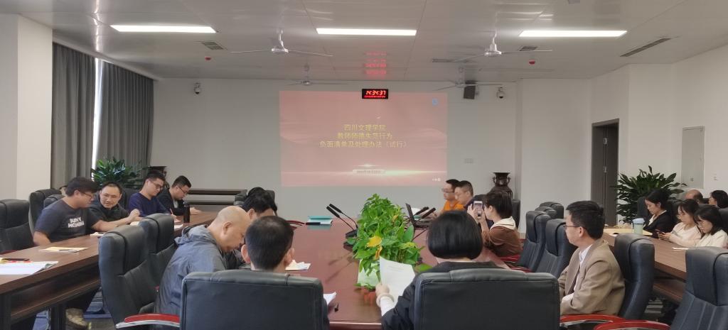 会议学习了《高等公司教师职业道德规范》《新时代高校教师职业行为十项准则》《太阳成集团tyc122cc教师师德失范行为负面清单及处理办法(试行)》文件精神。王晶书记结合教育部近期发布的违反师德师风典型案例,对有关教师师德失范行为逐一做了解读,要求全体教师对照准则,严格规范自身言行,从典型案例中汲取教训、引以为戒,在日常的公司产品工作中,必须严守底线,用行动诠释师德师风的真正内涵。